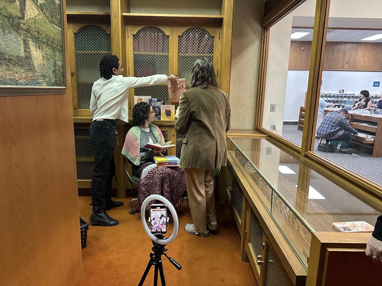 When the pandemic prevented volunteers from entering the library, Siemsen-Fuchs, then serving as volunteer coordinator, began creating video content with a sassy and attention-catching voice. When Evan Szymkowski, a member of the accounting staff, joined the social media team in 2022, the two began experimenting with more cinematic styles of content.