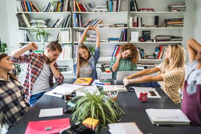 These exercise guides are laminated and placed throughout the library, with the message that âevery hour you need to take 15 minutes to take care of yourself â and if you push through those 15 minutes, the quality of retention will not be at the same level as if you took a moment and grabbed some water and did some exercises and got your blood flowing.â