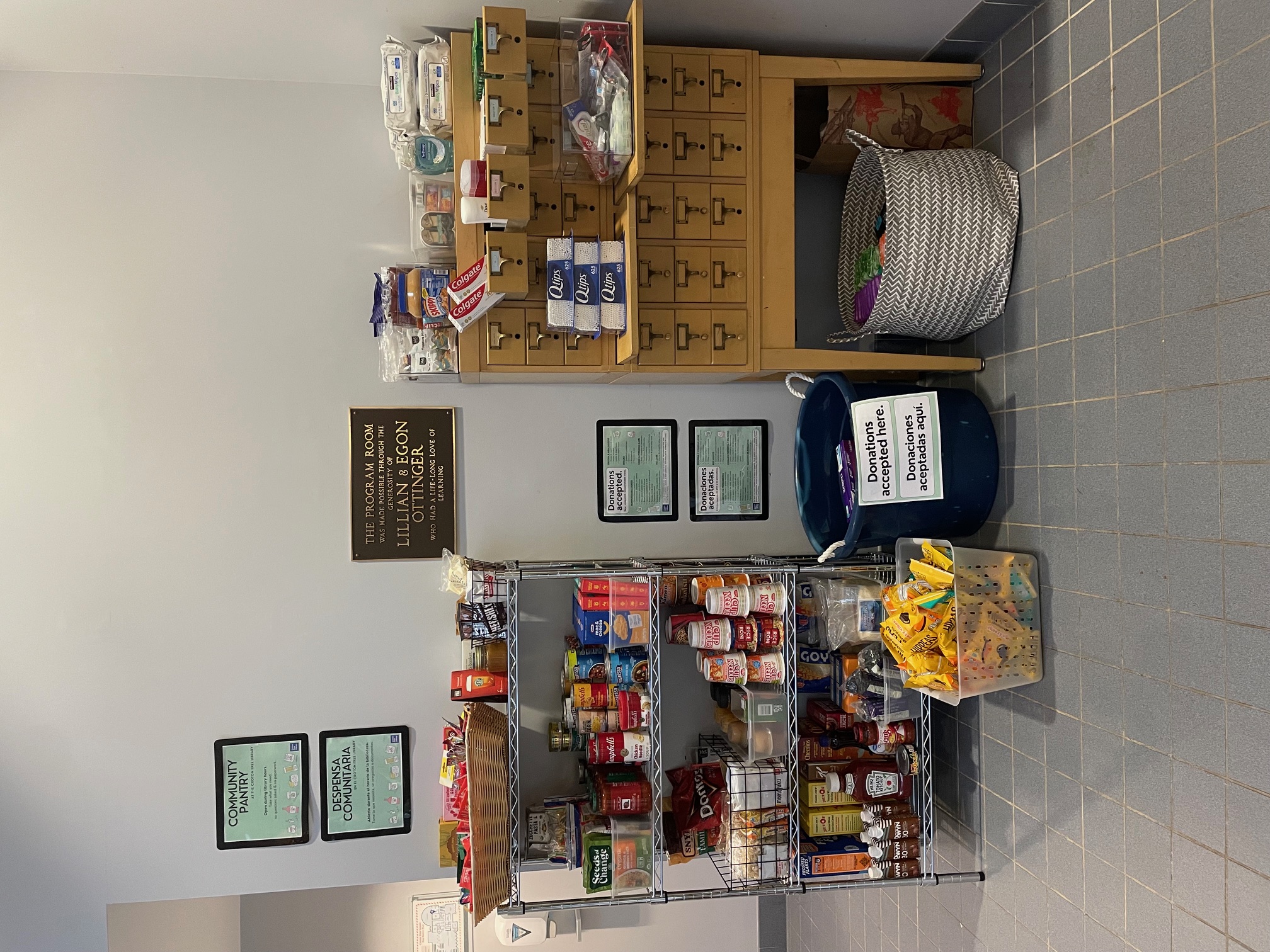 Our goal was to increase the availability of food and hygiene supplies to those in need, in a convenient location. We started planning about a week before we put food on the shelves, researching other libraries that had community pantries and fridges or freezers, and reading their policies and the details of how they worked. In terms of practical steps, we did one Costco trip and began collecting donations off-site a few days before opening. Volunteers were critical to the initial setup and continue to be the cornerstone of keeping the pantry stocked.