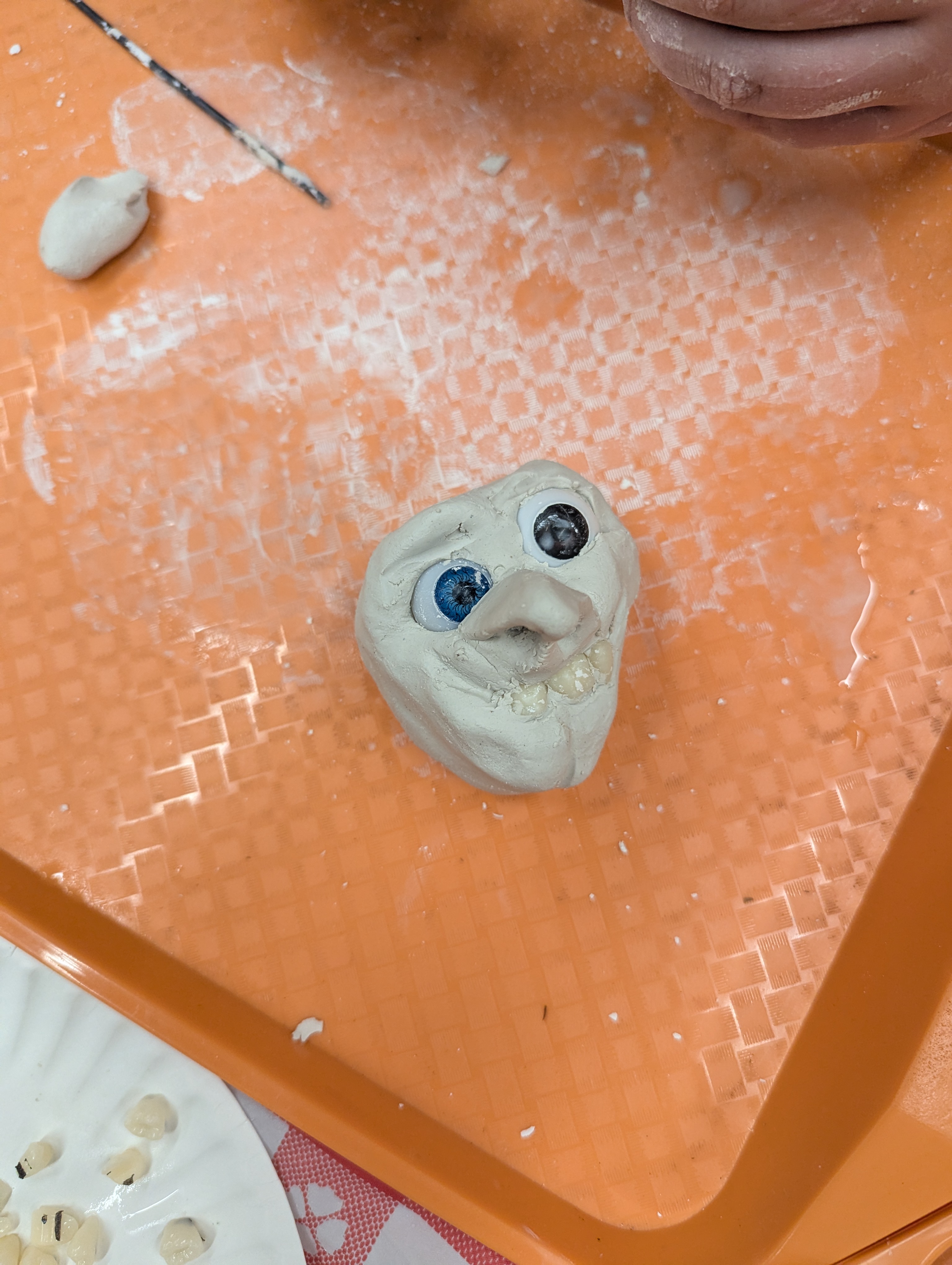 Teens loved it. The open-ended nature of the clay allowed them to be creative and make whatever they wanted, but almost all of them used the eyes and teeth in their creations. The novelty of the fake human teeth delighted them, and they proudly told me later about how their parents had thought their art was super creepy.