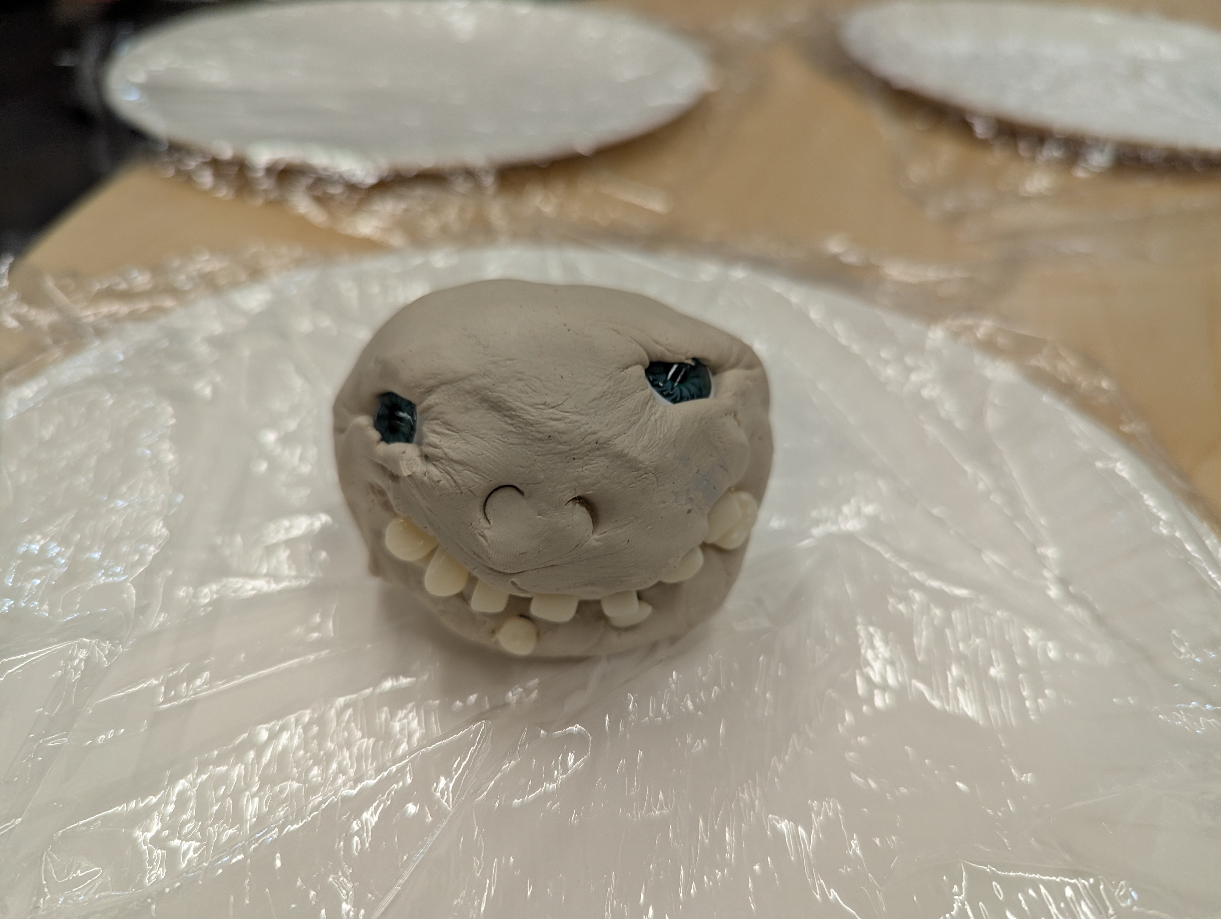 - Purchase air dry clay, fake human teeth, and plastic half eyes.