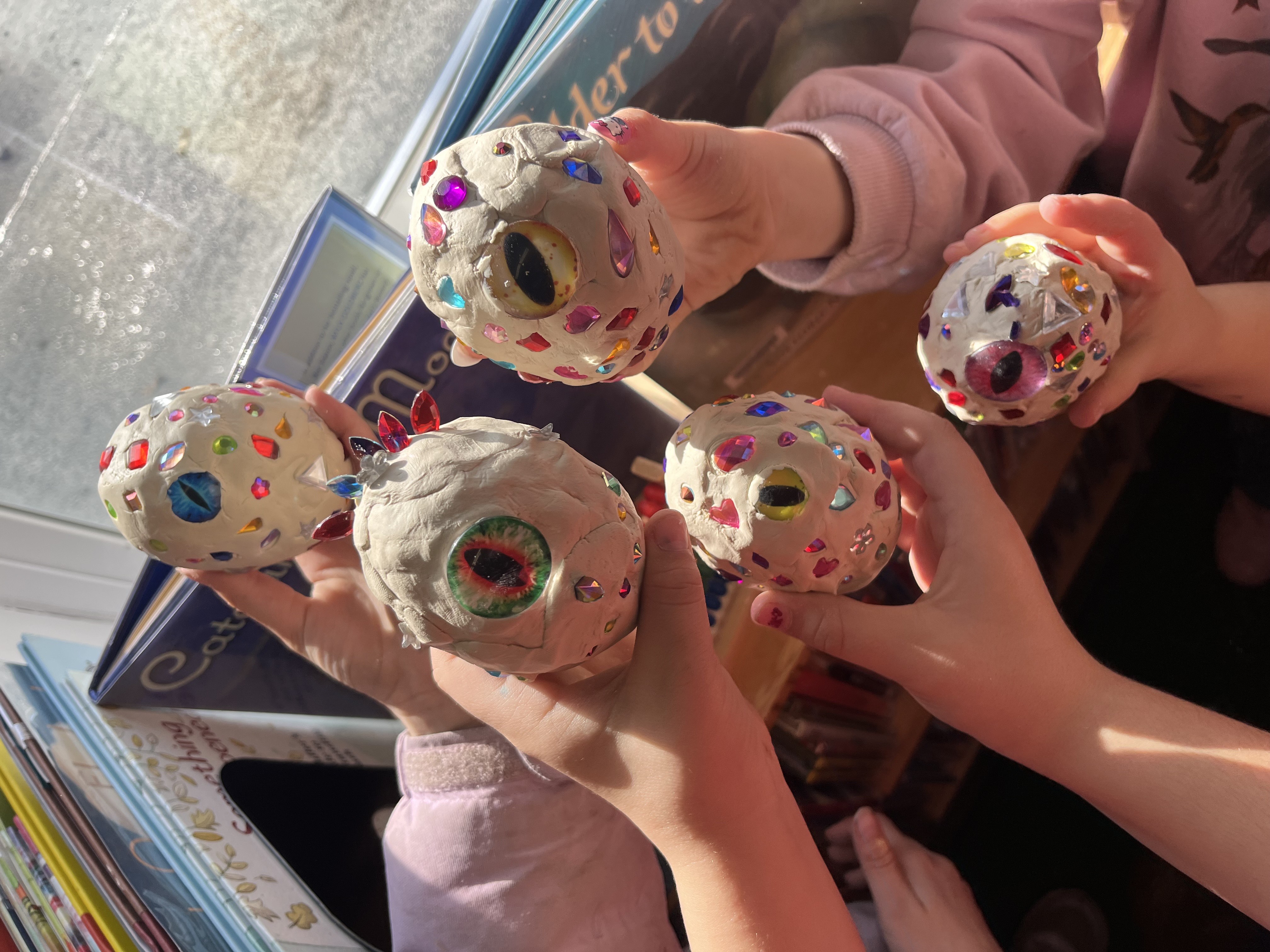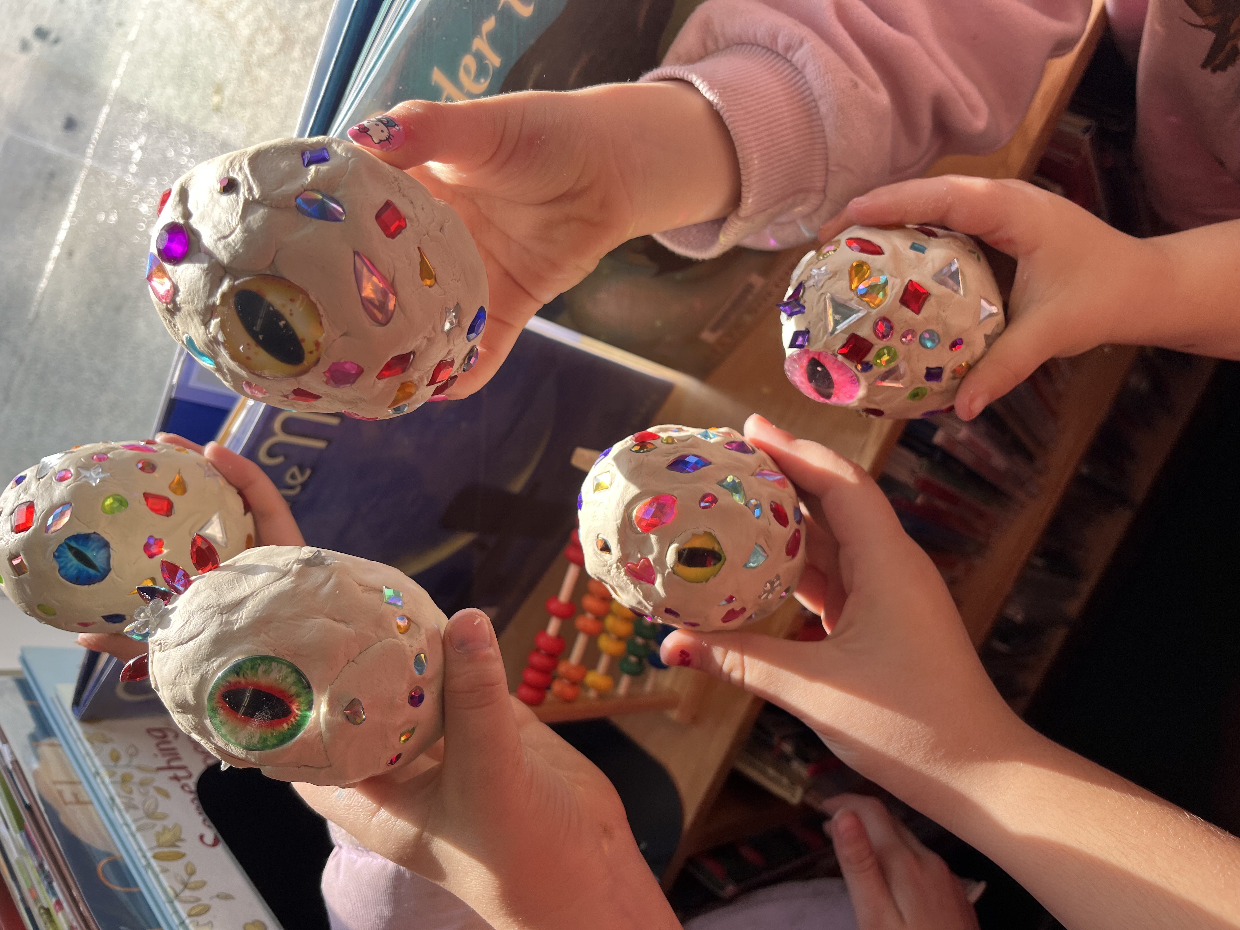 Patrons enjoy dragon stories and make their own dragon egg to take home.