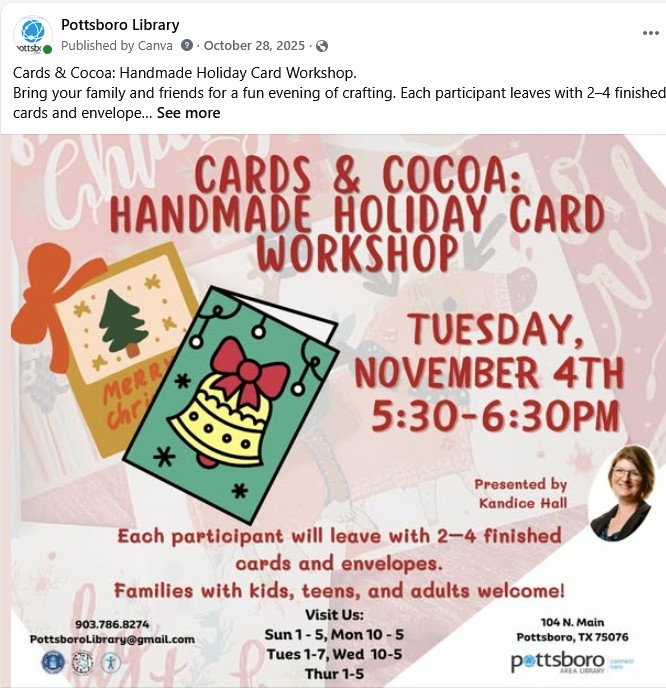 The program not only reduced social isolation by creating consistent opportunities for connection but also strengthened community pride by showcasing the talents and knowledge already present in Pottsboro. Many participants expressed interest in attending future sessions or volunteering as instructors themselves, indicating the program’s sustainability and long-term value.